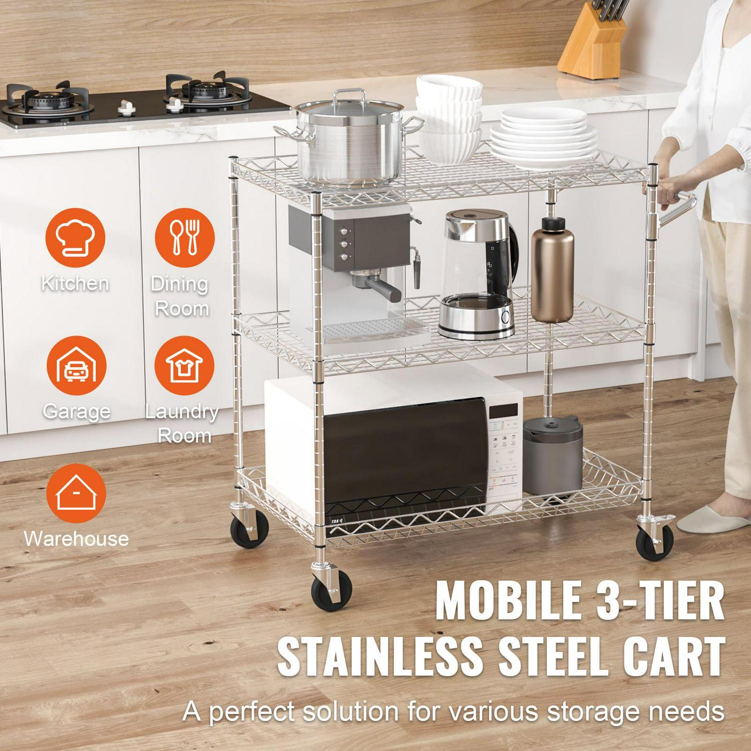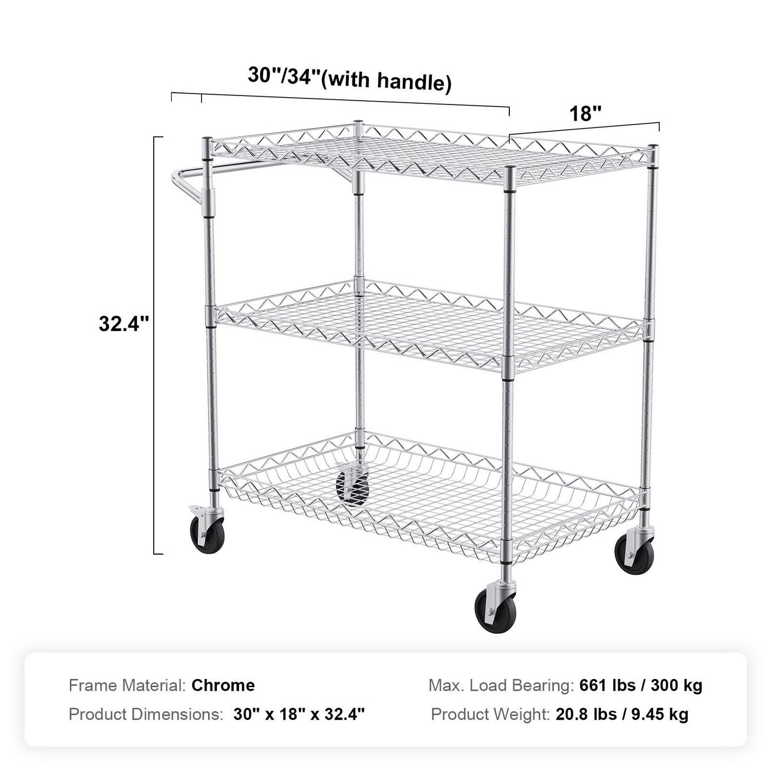 – Load Up and Roll: Are you ready to get more out of your kitchen space BENTISM’s 3-tier utility cart is made of industrial-strength steel, ensuring durability and resistance to deformation. It can carry up to 661 lbs / 300 kg of heavy objects, perfect for storing and transporting large kitchen appliances, heavy machinery, etc. Time to load up and roll!