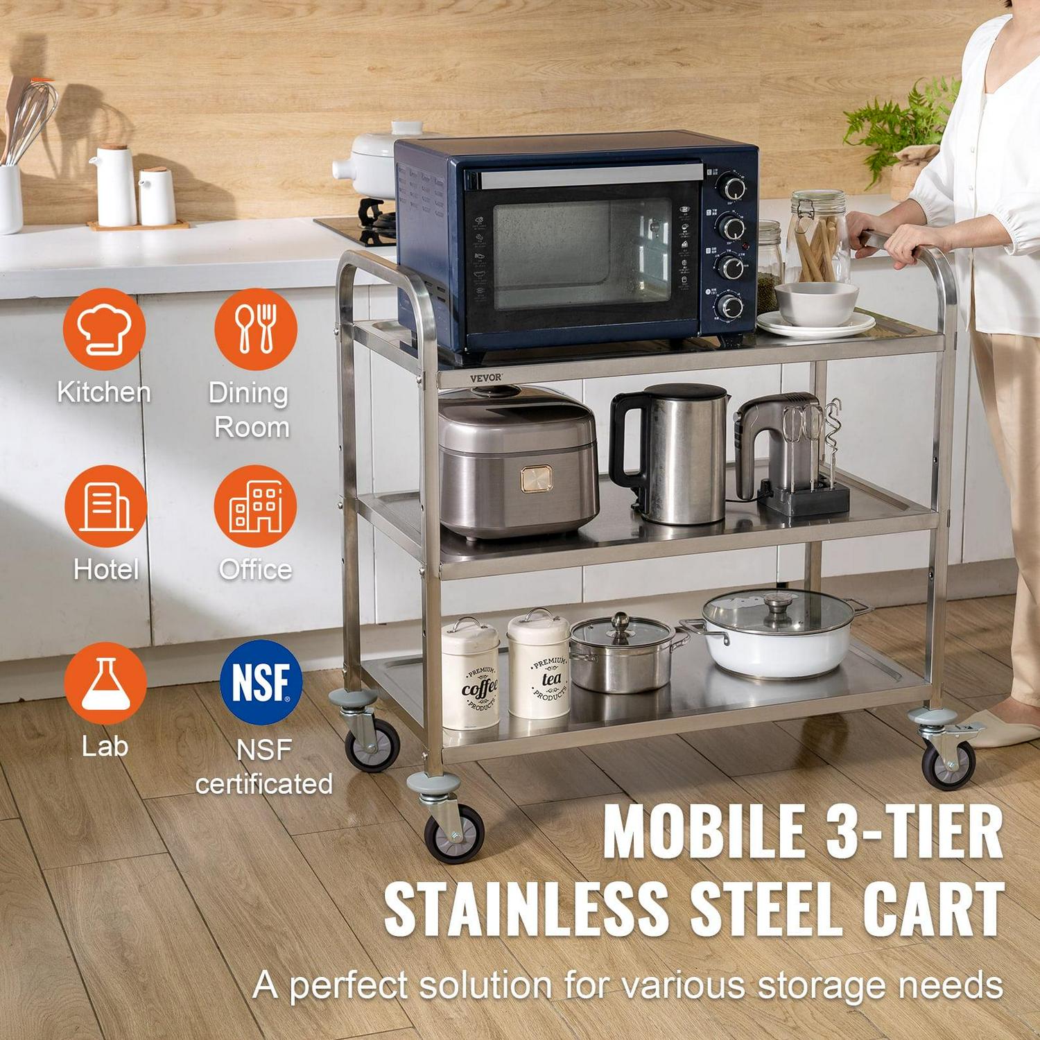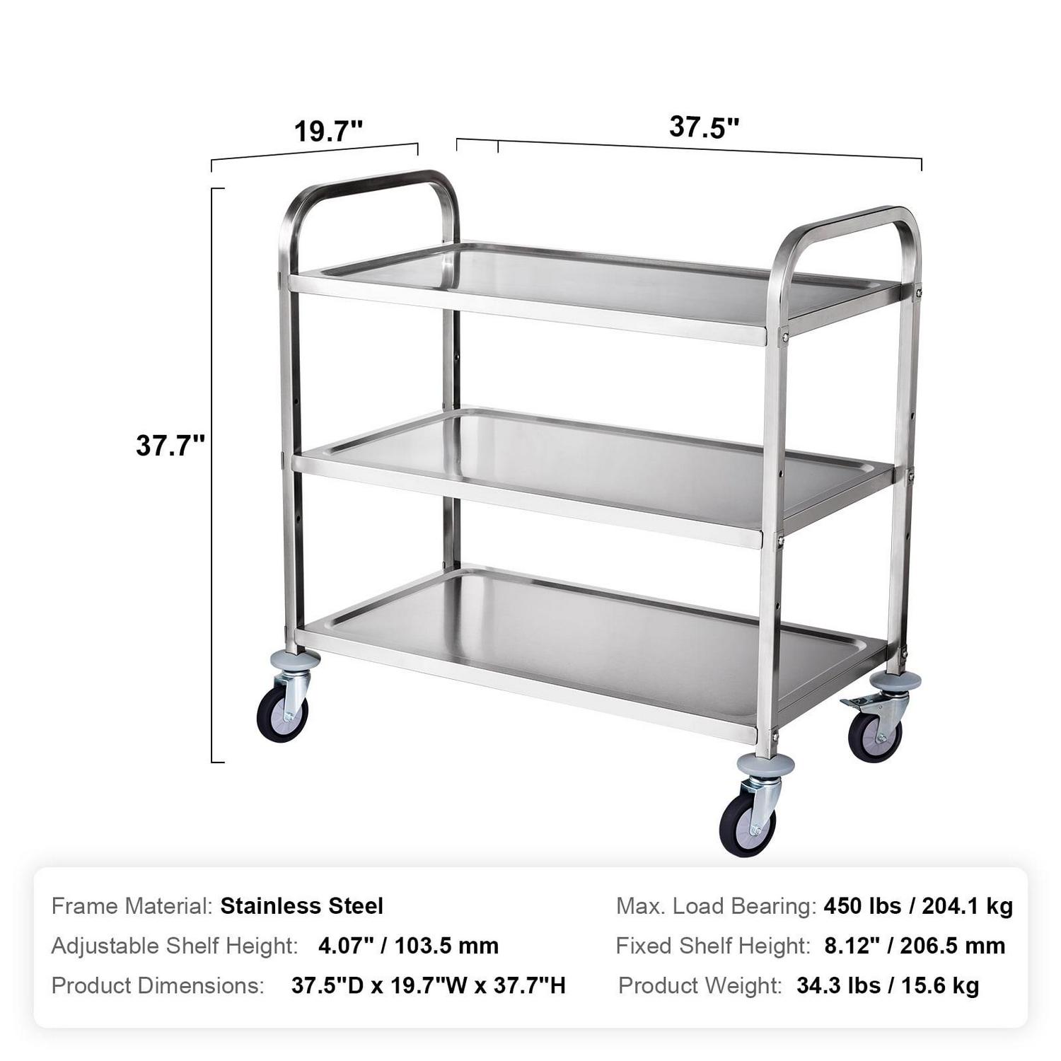 – Load Up and Roll: Are you ready to get more out of your kitchen space BENTISM’s 3-tier utility cart is made of industrial-strength steel, ensuring durability and resistance to deformation. It can carry up to 450 lbs / 204.1 kg of heavy objects, perfect for storing and transporting large kitchen appliances, heavy machinery, etc. Time to load up and roll!