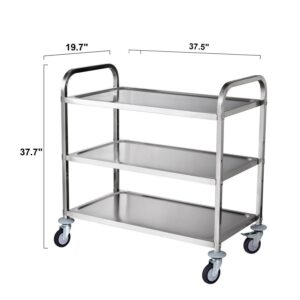 BENTISM 3-Tier Utility Cart Rolling Cart on Wheels 37.5 x20 x37.7 , 450 lbs 6 Hooks