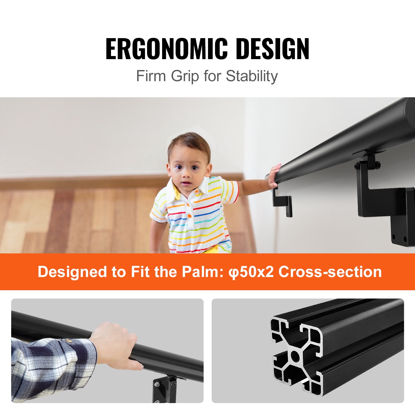 Product Description BENTISM Stair Handrail, Safeguarding Your Family’s Well-Being We deeply understand that safety is of utmost importance in areas like stairs, hallways, or balconies for you and your family. Therefore, we ensure the use of sturdy installation components to enhance stability and avoid any unforeseen accidents. 440 lbs Load Capacity The aluminum alloy handrail boasts outstanding load-bearing capacity of up to 440 lbs, providing you with a secure and supportive grip without bending, and the screw fixation prevents slipping. Rich Accessories The railing kit is equipped with specialized accessories, the installation process is made easy and hassle-free with just a few simple steps. Universal Applicability With a cross-section size of φ50×2, we have designed the handrail to cater to different age groups’ gripping characteristics, offering a comfortable and ergonomic experience. Suitable For Various Settings The handrail’s simple and versatile black appearance, along with its powder-coated surface, allows it to blend seamlessly with various interior styles. 2 Combination Options We offer both single-segment and multiple-segment combinations, making it easy to match different sizes of handrails even at indoor staircase corners. Sturdy Installation Structure With plastic expansion pipes, the handrail can be firmly embedded into the interior of the wall, along with anti-loose nuts, ensuring a longer lifespan and preventing slipping or shaking. Specifications Item Model Number: H8170-4 Item Length: 4 ft / 1220 mm Max. Load Capacity: 440 lbs / 199.6 kg Distance Between Columns: 35.4″ / 900 mm Main Material: Aluminum Alloy Net Weight: 5 lbs / 2.3 kg Item Dimensions: 48 x 2.76 x 7″ / 1220 x 70 x 180 mm Package Content 10 x Plastic Expansion Tubes 10*50 10 x Self-Tapping Screws M6.5*50 3 x Hex Socket Cap Screws M6*30 3 x Anti-loosening Nuts M6 1 x Open-end Wrench 8-10 1 x Internal Hex Wrench 4 mm 1 x Drill Bit 10*150 1 x User Manual
