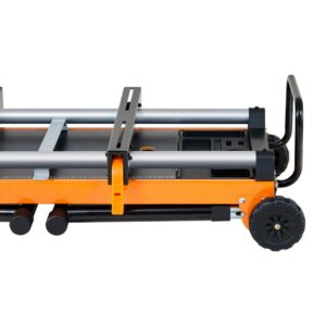 – Folding at Once: This quick-folding miter saw stand can be collapsed in a few seconds and carried into an elevator and other small spaces. The attached side handle design relieves the stand, making it easy to store against the wall.