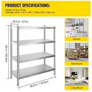BENTISM 46.8×18.5 inch Stainless Steel Shelf Heavy Duty Shelf 4 Tire Rack Kitchen Shelf Storage