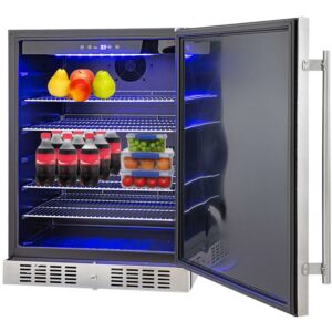 5.3 cu. ft. refrigerator, freestanding or built-in application. Door of reversible design, allowing better capability. Sleek and fashionable 304 stainless steel construction keeps the refrigerator well-insulated so your beverages stay cold and refreshing even under severe conditions. Works efficiently and quietly with Embraco compressor and ETL certification. An atmosphere maker for both outdoor and indoor application.