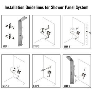 – Stainless Steel & Brass: This shower panel system consisting of a 304 stainless steel frame, brass water distributor, and stainless steel fixer will work for maintenance-, rust/corrosion-resistant to lengthen its service time.