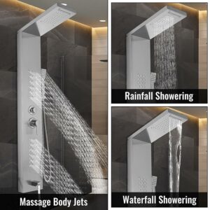 BENTISM 5 in1 Stainless Steel Shower Panel System Water Faucet Sprayer Silver
