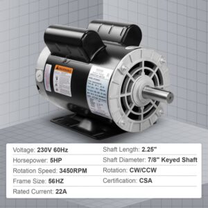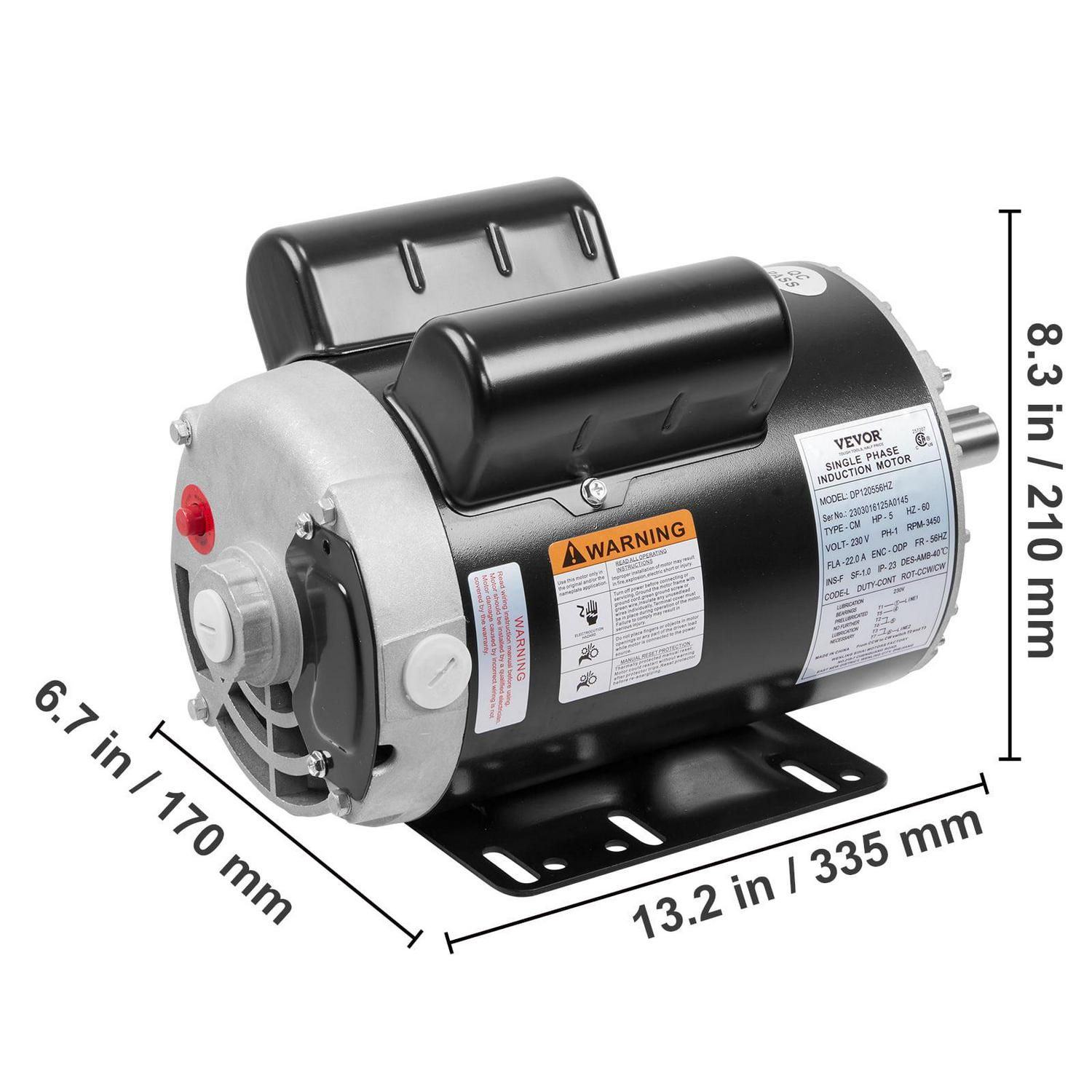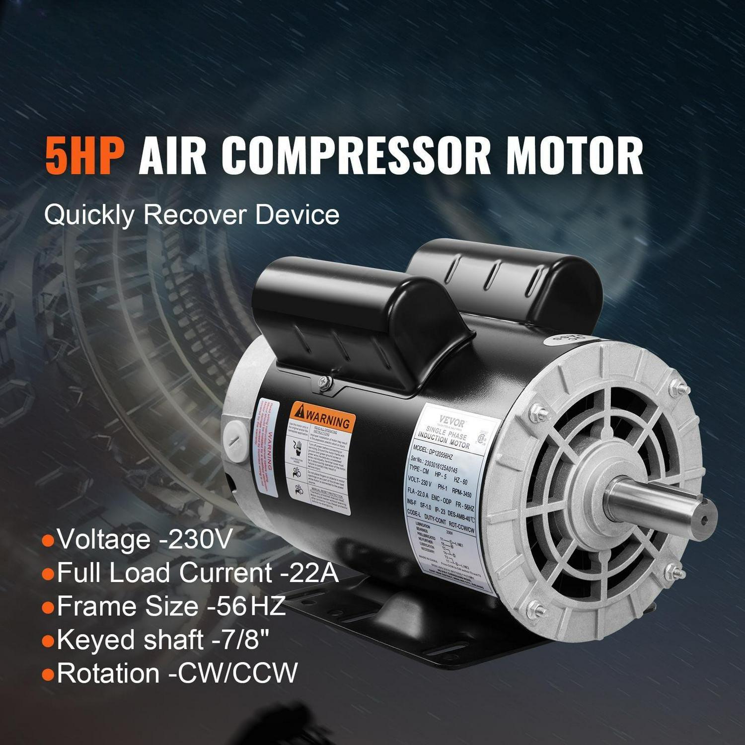 BENTISM 5HP Air Compressor Electric Motor, 230V 22 Amps, 56HZ Frame 3450RPM, 7/8 Keyed Shaft, CW/CCW Rotation, 2.25 Shaft Length for Air Compressors Has Obtained CSA Certification