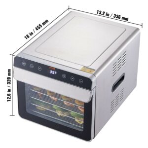 BENTISM 6 Trays Food Dehydrator Machine Stainless Steel 700W Jerky Fruit Drying