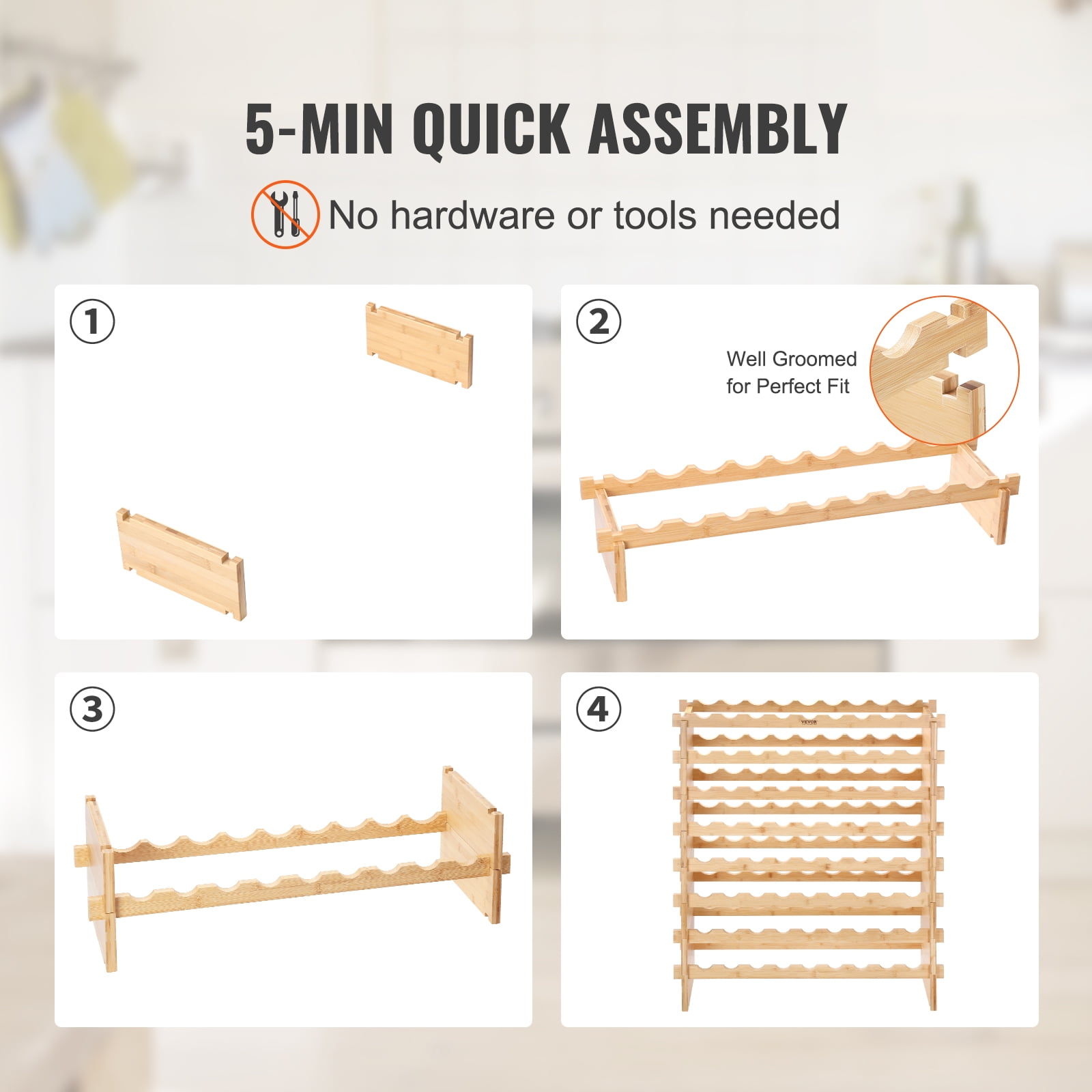 VEVOR 72 Bottle Stackable Modular Wine Rack Bamboo Wood Display Shelf 8-Tier