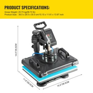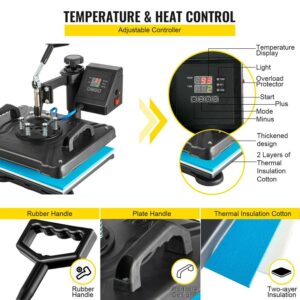 BENTISM 8 in 1 Heat Press Machine, 12 x 15 Combo Swing Away T-Shirt Sublimation Transfer Printer with Teflon Coated, Mug/Hat/Plate Accessories Included