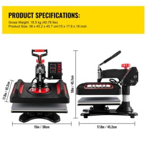 BENTISM 8 in 1 Heat Press Machine 12 x 15 upgraded Sublimation Machine 800W Rotation Swing Away Heat Press Dual-Tube Heating for DIY T-Shirts Cap And Mugs