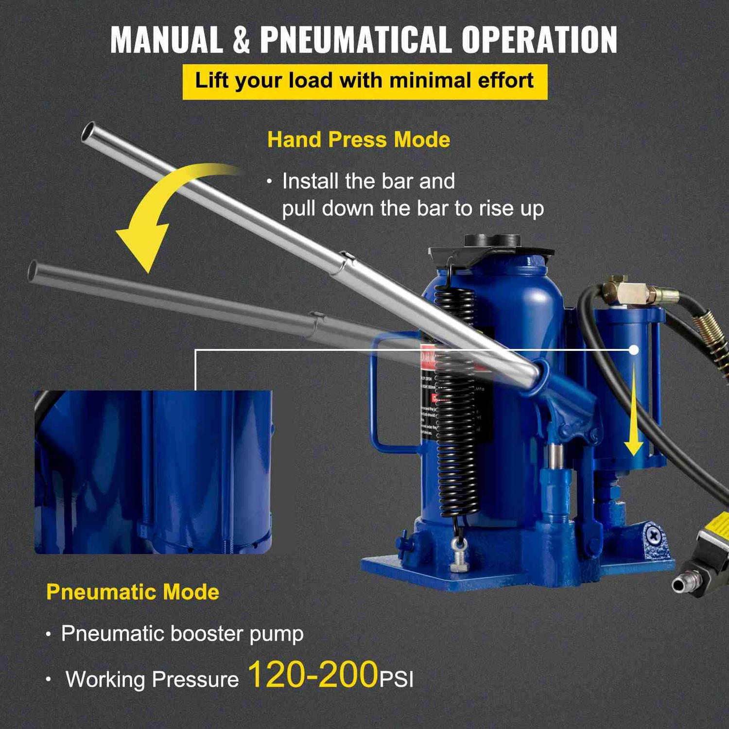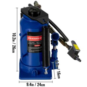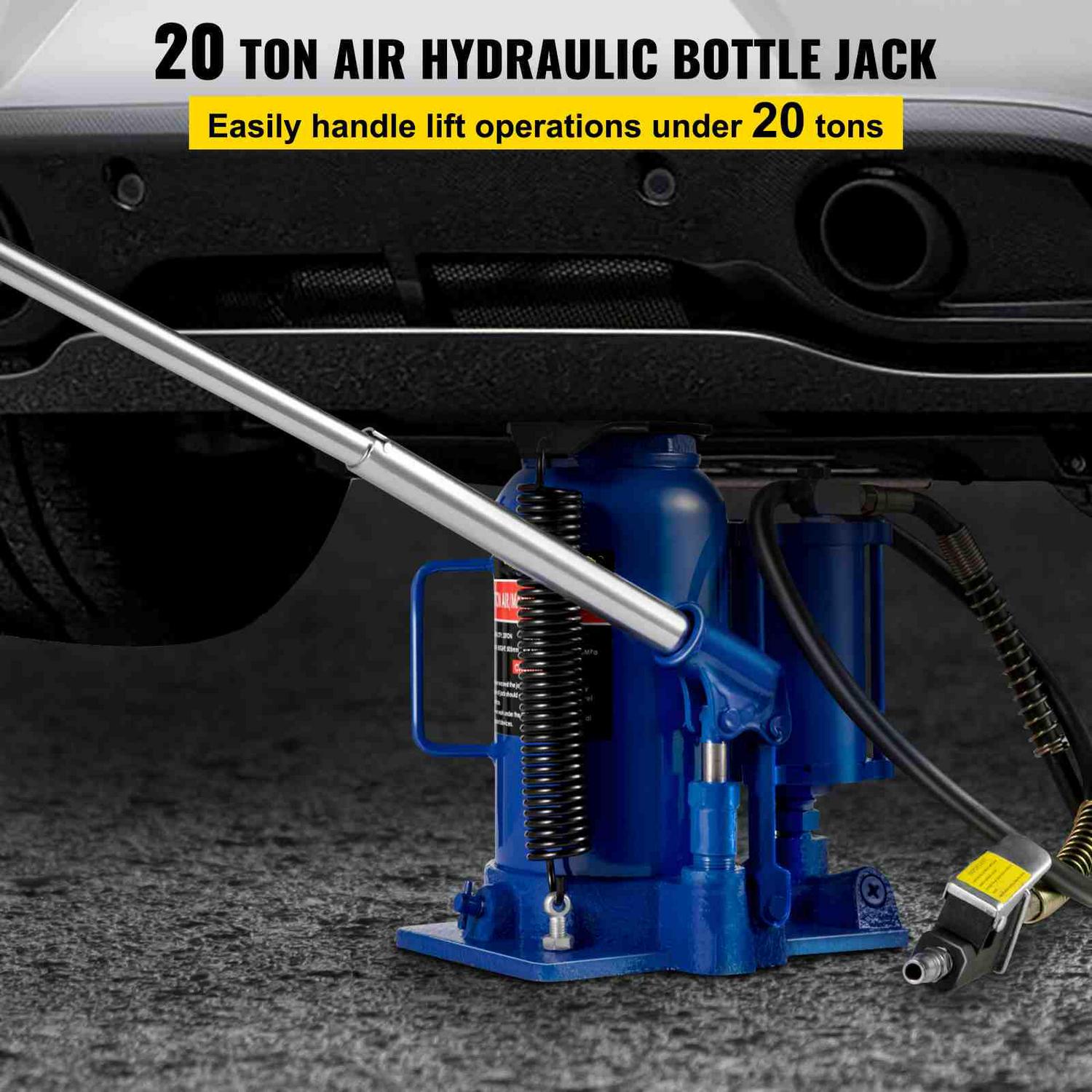 The car jack hydraulic 20 Ton Air and Hydraulic Jack, which can easily handle lift jobs up to 20 tons. Ideal for automotive, heavy duty truck repair, moving machinery and heavy equipment and a variety of maintenance applications.