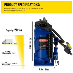 BENTISM Air Hydraulic Bottle Jack 20 Ton Manual 44092lb Heavy Duty Auto Truck RV Repair