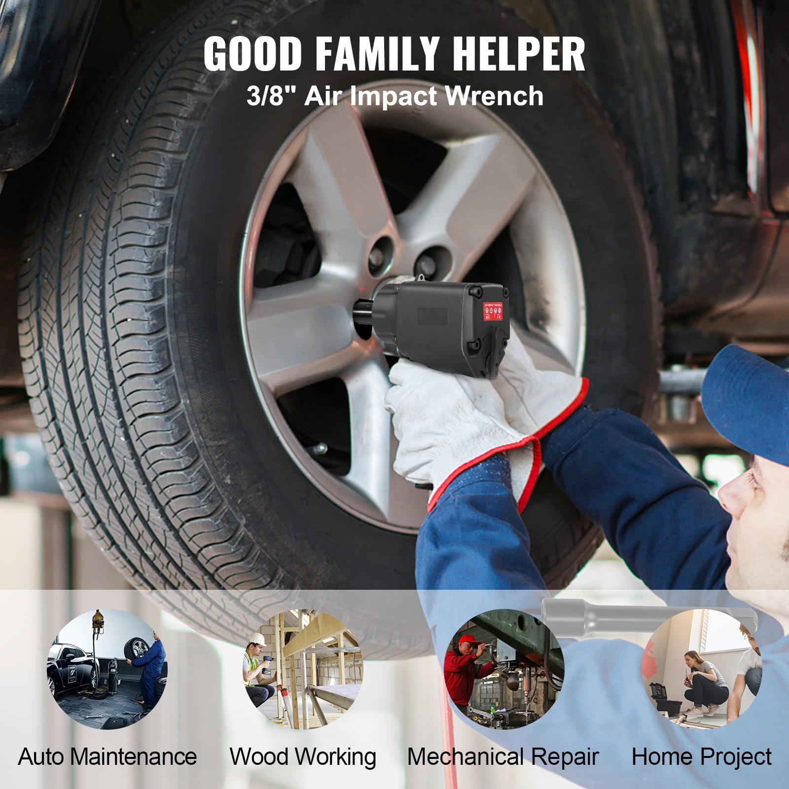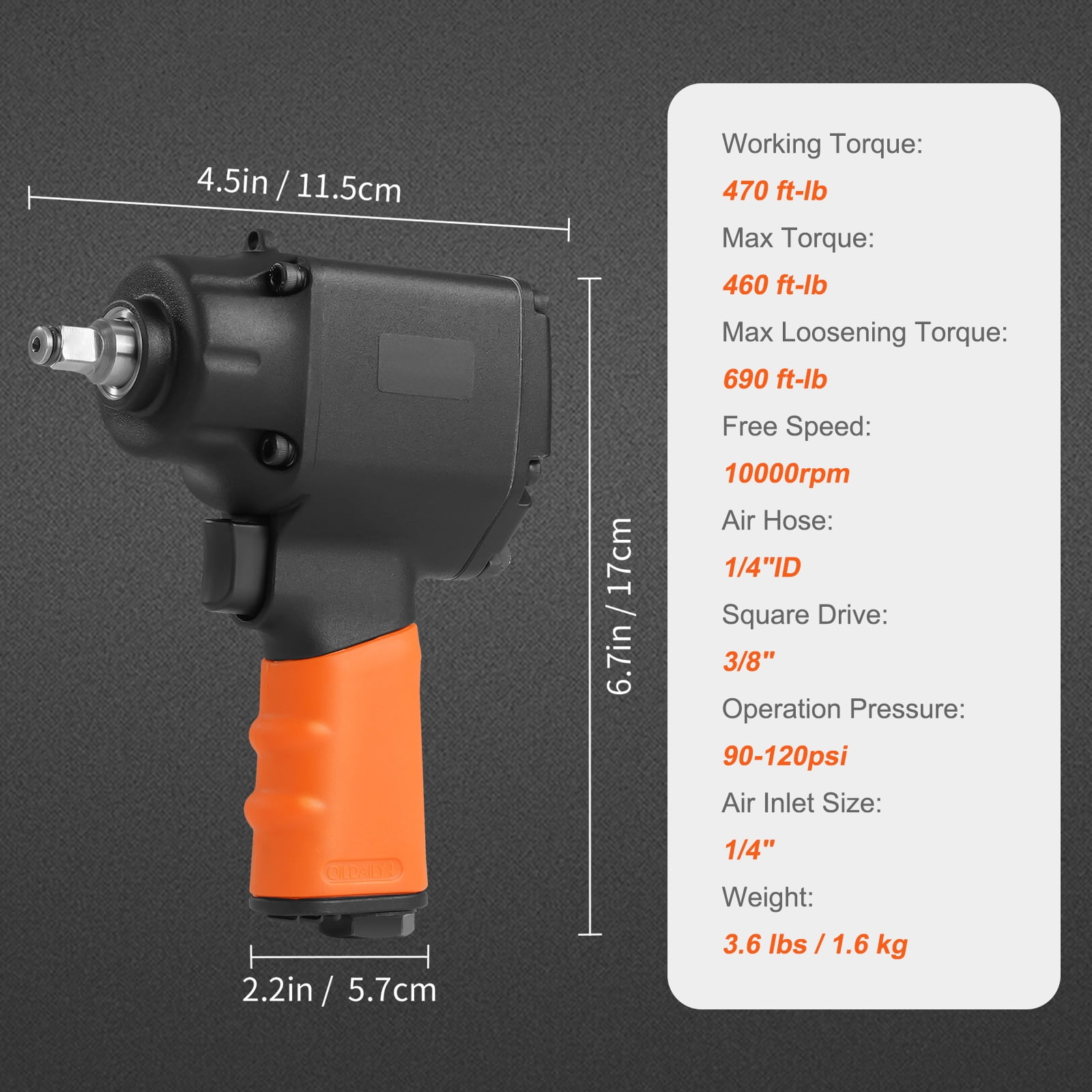 VEVOR Air Impact Wrench, 3/8-Inch Drive Air Impact Gun, Up to 690ft-lbs Nut-busting Torque, Lightweight Pneumatic Impact Wrench for Auto Repairs and Maintenance