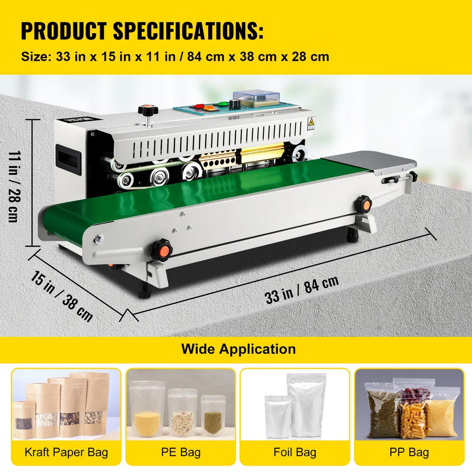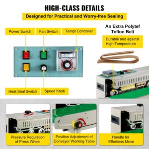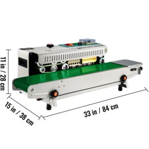 – Durable Material: This continuous sealer has all-metal construction with durable electrostatic paint treatment. The heating block and cooling block are made of pure copper. This premium material against wear is relatively solid.