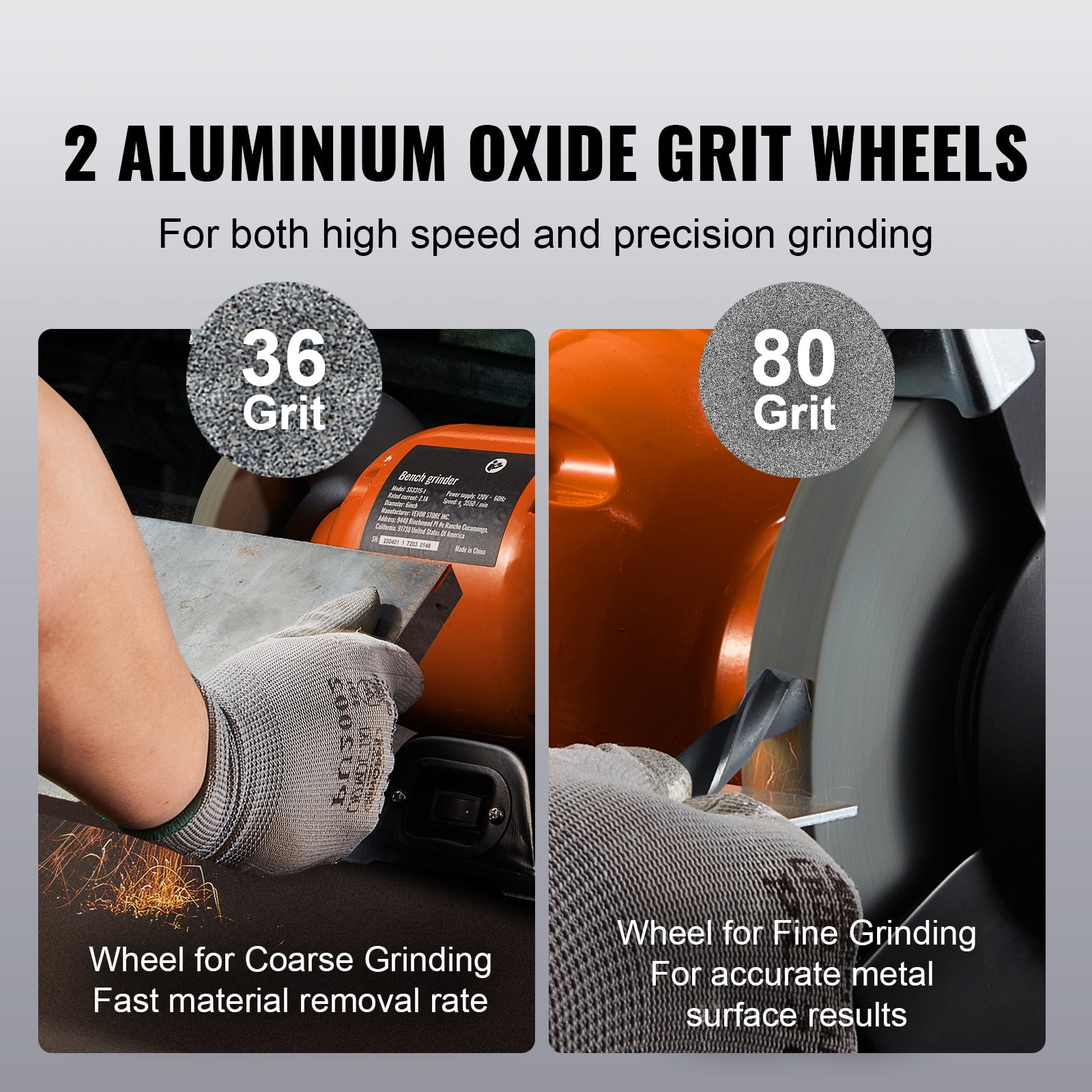 VEVOR Bench Grinder, 6 inch Single Speed Bench Grinder with 2.1A Brushless Motor 3550 RPM Table Grinder with 36/80-Grit Grinding Wheels for Grinding, Sharpening Application