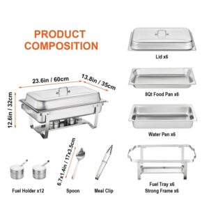 BENTISM Chafing Dish Buffet Set 6 Pack 8QT Stainless Steel Food Warmer Chafer Kit with 6 Full Size Food Pan with Fuel Holder