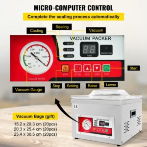– Portable Design: This desktop vacuum packaging machine has a compact size to save more space. Product Size(L x W x H): 16.1 x 12.6 x 11.8 in. Besides, the hanging ring is included to carry and transport more efficiently, and rubber feet improve stability while in use.