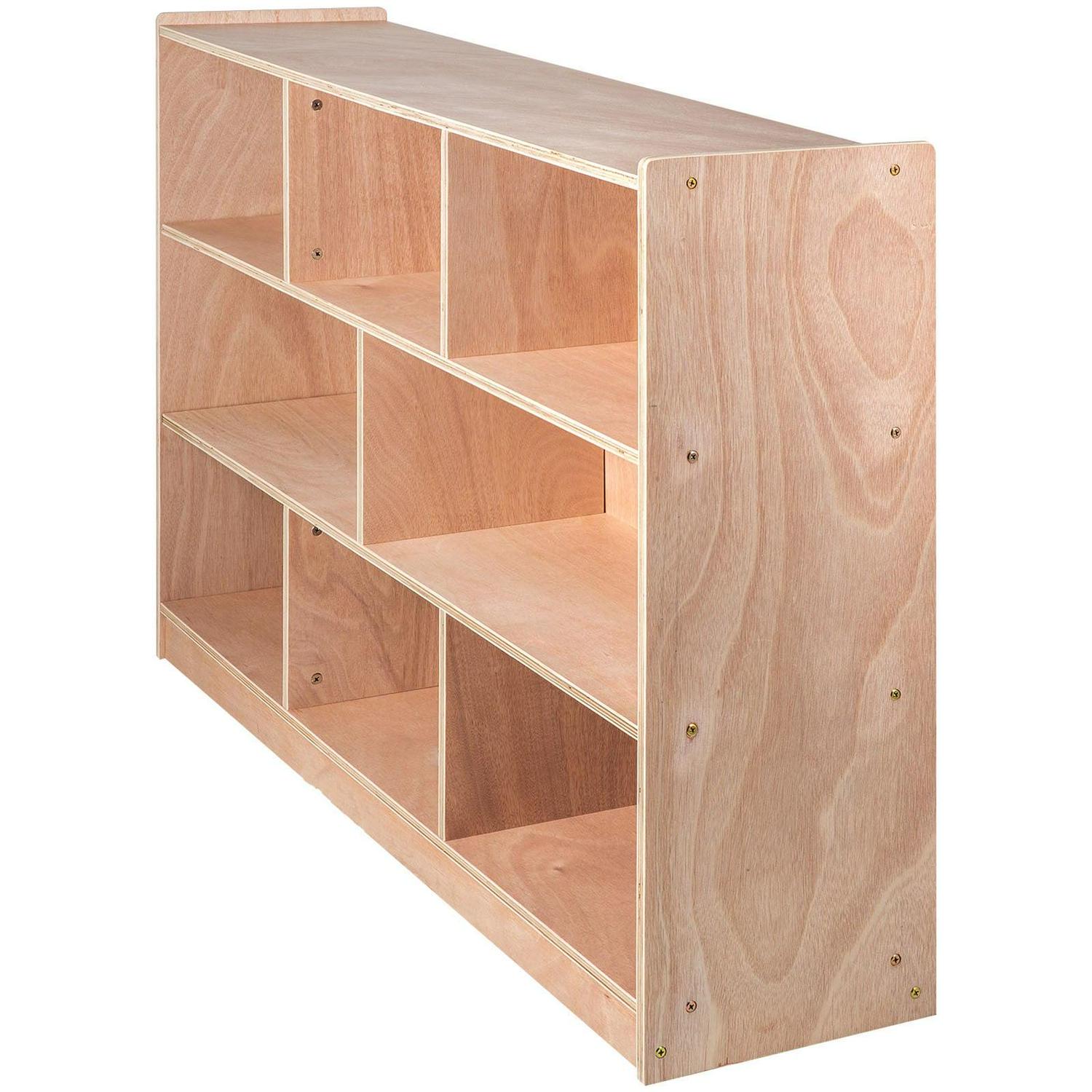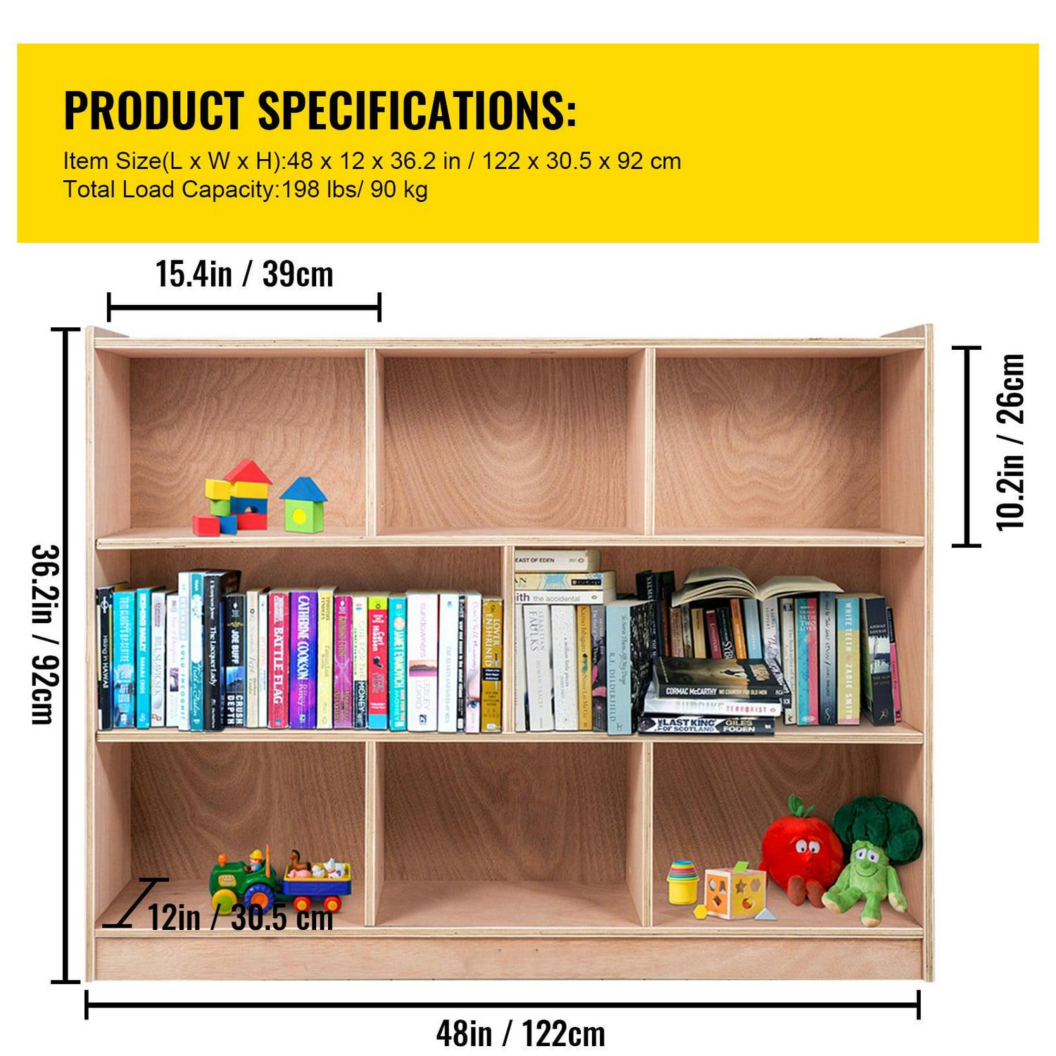 – 8 GRIDS CABINET – Product Size: 47.8x13x36″(LxWxH); Material: Birch Plywood; Plate Thickness: 15mm; Each Grid Load Capacity: 33lbs. Beautiful wood texture, quite fashion cabinet to help organize or display toys, books, blocks etc. Keep things neat and ready to get.