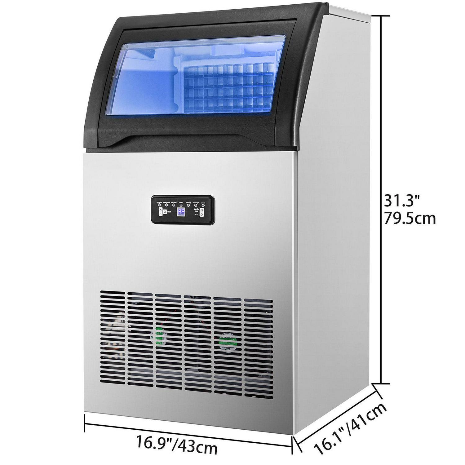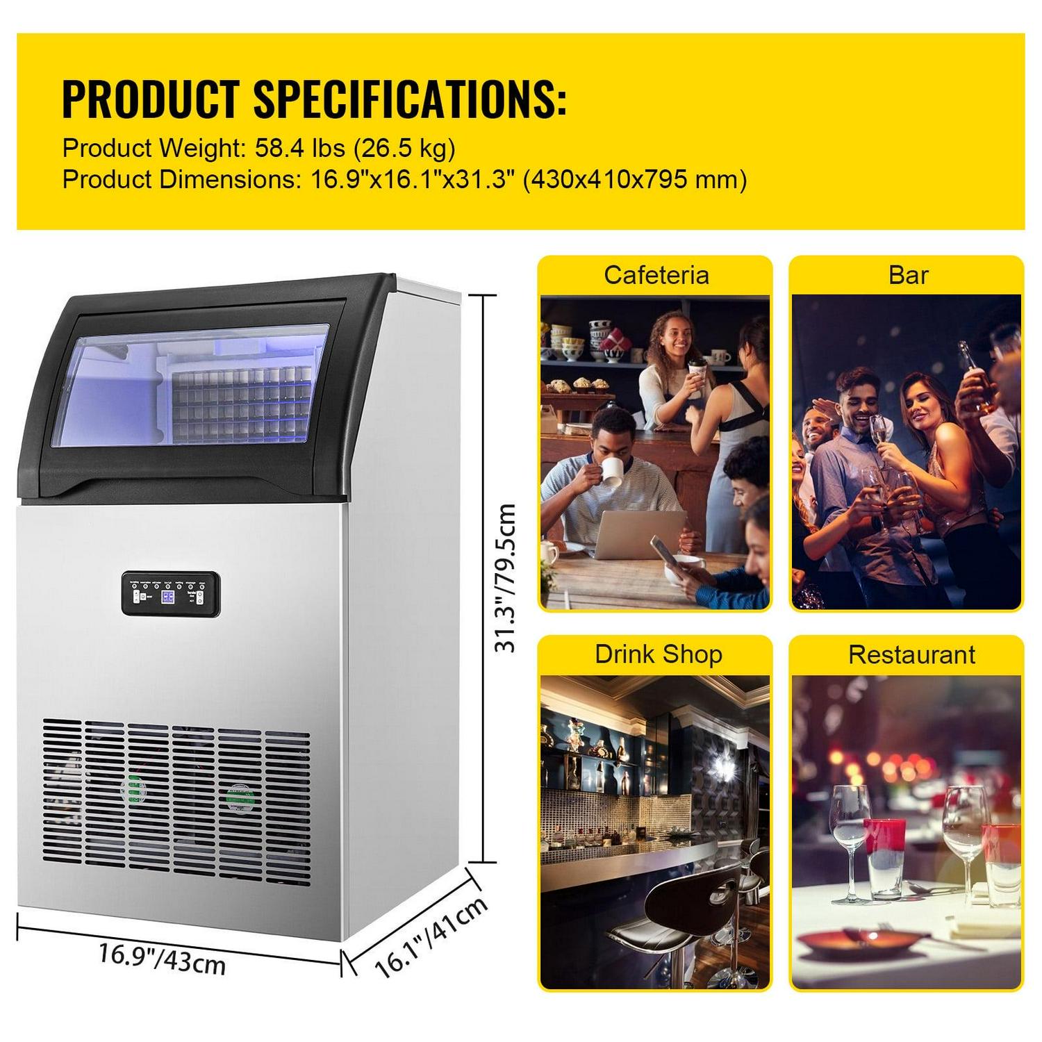 – Sturdy & Compact Body: Our commercial ice machine measures 16.9″x16.1″x31.3″ and weighs 58.4 lbs. This freestanding ice maker is composed of stainless steel shell, Cyclopentane foaming layer, and food-grade PP liner, providing you with eye-pleasing rust & wear-resistant exterior and reliable heat insulation effect, preventing the ice cubes from melting too quickly (Note: If you want to store the ice cubes for longer, please put them in the refrigerator or freezer.).