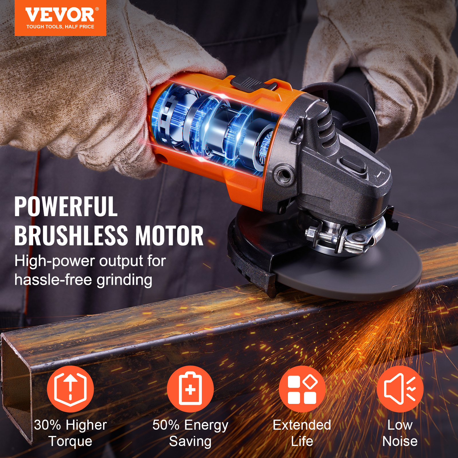 Unstoppable Power: BENTISM 20V anger grinder features a powerful 9000 rpm brushless motor saving 50% on electricity, combined with a high-power output, increasing torque output by 30%. The grinder power tool has strong explosive power, efficient cutting. Operate Longer & More Conveniently: This top-quality electric angle grinder tool is equipped with a 20V 4.0AH high-capacity rechargeable lithium-ion battery and charger, and supports USB-C fast charging, no need to worry about the battery running out. Its wireless design eliminates the trouble of entangled wires, making it very suitable for indoor and outdoor operations. Easy Installation and Use: Quick change system for easy installation and use. The grinder tool kit with 3 variable speeds helps users easily complete various tasks, such as metal cutting, grinding, polishing, tile cutting, wood sanding, and cutting. Enhanced Safety and Protection: The enlarged metal protective cover is fastened with a pressure plate to prevent sparks from splashing. When the wireless grinder detects clamping, stalling, or binding events, the electronic brake will quickly rotate with maximum force. With overload and overcurrent protection to provide multi-directional protection. Air outlet with a dust filter to reduce debris entering the machine and extend its service. Made for Optimal Comfort: The lightweight design, optimized heat dissipation structure, and comfortable soft rubber grip provide a comfortable user experience, even during long periods of use. Adjust the handle to fit your grip style, whether you’re left-handed or right-handed, so you can work comfortably. Anyone can operate this compact grinder tool easily.