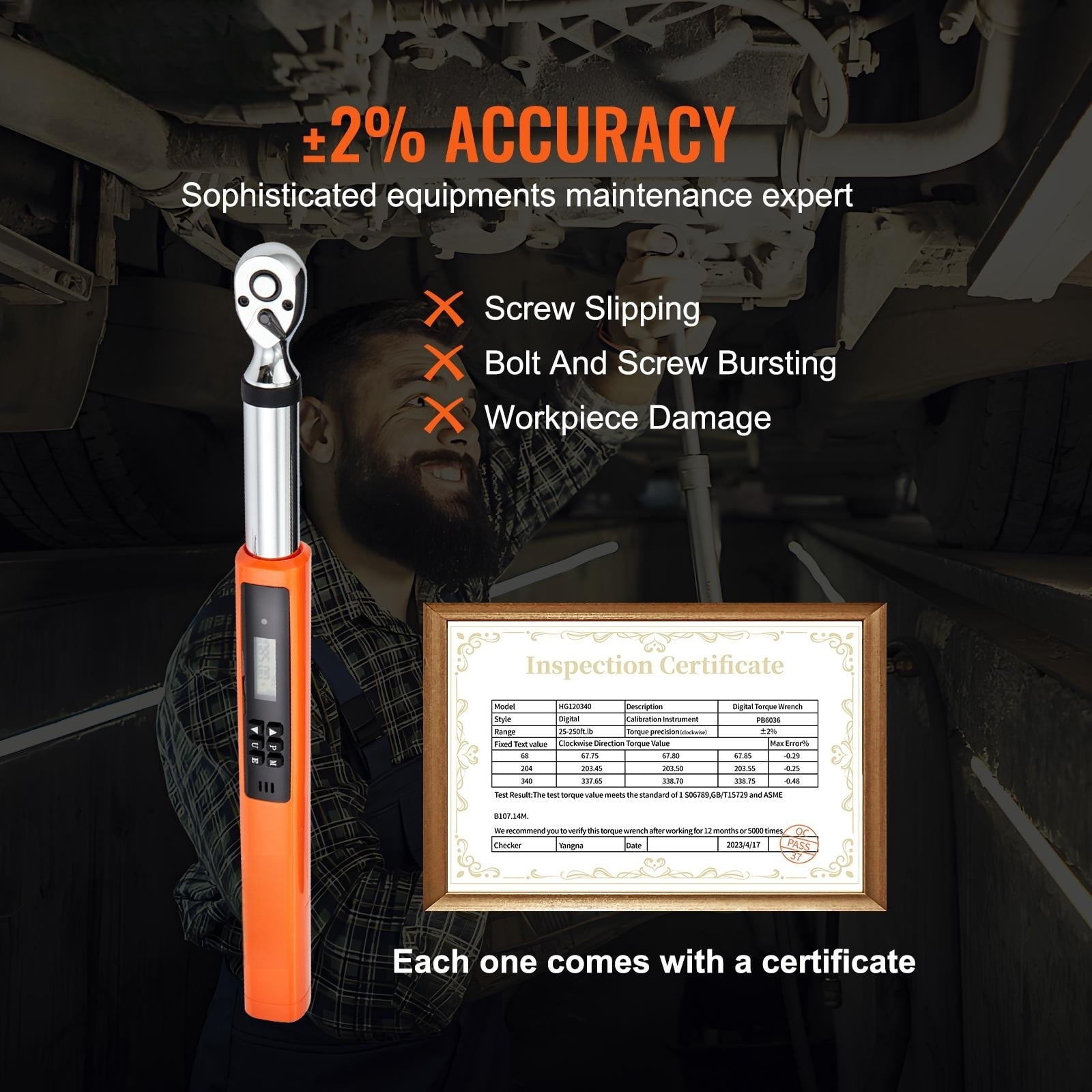 Uncompromising Accuracy: Our 3/8″ digital torque wrench boasts a torque range of 3.7-37ft.lb / 5-50n.m, providing exceptional accuracy of up to ±2%. Calibration certificates accompany each torque wrench set, ensuring that you can confidently and precisely tighten fasteners on your vehicle or equipment without incurring any damage. Clarity at a Glance: Our digital torque wrench kit is designed with a high-definition LED screen and built-in backlight, providing crystal-clear readability even in low-light conditions. With four unit options – Nm, in-lb, ft-lb, and kg-m – you have added convenience at your fingertips. High Compatibility: The adjustable torque wrench comes equipped with drive adapters and extension bars, making it an incredibly versatile tool that can be used for a wide range of applications. Compatible with both 1/2″ and 1/4″ bolt sizes, this digital torque wrench 3/8 drive is perfect for use in tight or deep spaces with limited access. Streamlined Efficiency: The reversible ratchet head allows for quick socket disassembly and installation with just one hand, improving work efficiency and saving you valuable time. With three working modes – real-time, peak, and preset memory – you can choose the mode that suits your needs for efficient and fast operations. Experience the convenience and efficiency of our torque wrench now! Constructed for Longevity: Constructed from robust chrome-vanadium steel, this heavy-duty torque wrench undergoes a rigorous six-stage heat-treated process and chrome-plated surface coating for optimal resistance to rust and corrosion. Additionally, the electronic torque wrench’s smooth surface facilitates easy cleaning. Uncompromising Accuracy: Our 3/8″ digital torque wrench boasts a torque range of 3.7-37ft.lb / 5-50n.m, providing exceptional accuracy of up to ±2%. Calibration certificates accompany each torque wrench set, ensuring that you can confidently and precisely tighten fasteners on your vehicle or equipment without incurring any damage. Constructed for Longevity: Constructed from robust chrome-vanadium steel, this heavy-duty torque wrench undergoes a rigorous six-stage heat-treated process and chrome-plated surface coating for optimal resistance to rust and corrosion. Additionally, the electronic torque wrench’s smooth surface facilitates easy cleaning. Clarity at a Glance: Our digital torque wrench kit is designed with a high-definition LED screen and built-in backlight, providing crystal-clear readability even in low-light conditions. With four unit options – Nm, in-lb, ft-lb, and kg-m – you have added convenience at your fingertips. High Compatibility: The adjustable torque wrench comes equipped with drive adapters and extension bars, making it an incredibly versatile tool that can be used for a wide range of applications. Compatible with both 1/2″ and 1/4″ bolt sizes, this digital torque wrench 3/8 drive is perfect for use in tight or deep spaces with limited access.
