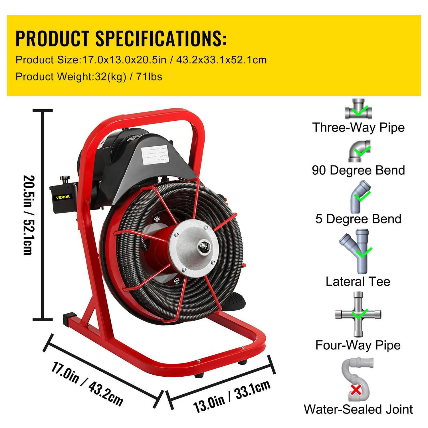– Thoughtful Details: Our sewer snake machine focuses on every detail to assure your security and prolong the service life. Built-in GFCI prevents electrical shock. Bottom has 2 foot covers to protect floor.A small tool tray designed on the frame for convenient storage and tools change.
