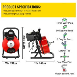 BENTISM Drain Cleaner Machine 50ft x 1/2 in,1700PRM Drain Cleaning Machine Solid-Core Auger Cable, 250W Drain Auger Snake Drill