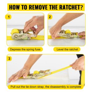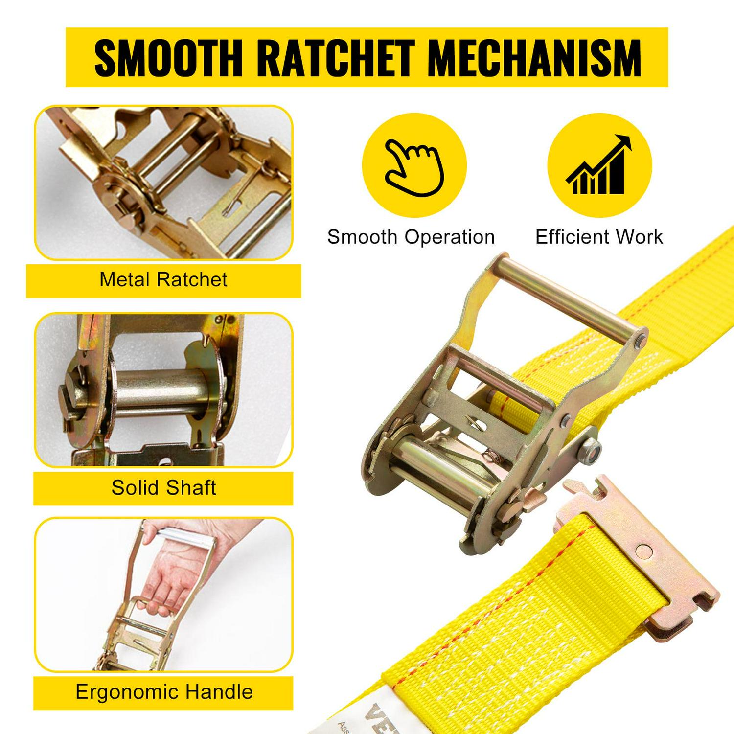 – Versatile Ratchet Straps: The VEVOR ratchet tie-down belt is efficient and durable when it comes to transporting all kinds of items. It is recommended to use this belt to securely fasten your motorcycles, bicycles, boxes, and other items in trailers or car roof racks.