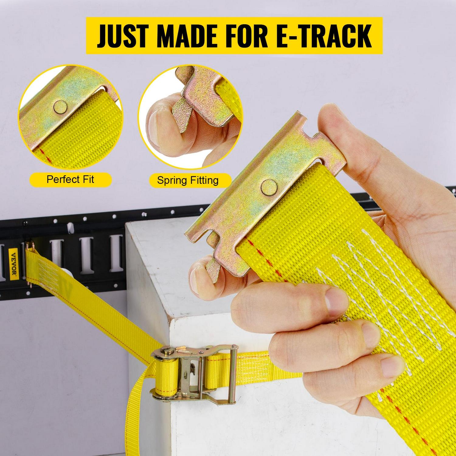 – Perfect for E-Tracks: Each E-track strap has, at one end, a spring attachment that clicks into any slot on your E-track rails. So, these straps easily secure cargo loads in your box truck, cargo van, pickup bed, or warehouse with the convenient and versatile E-track system.