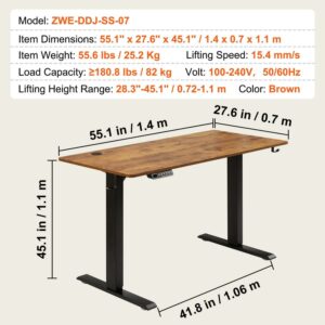 BENTISM Electric Adjustable Height Standing Desk 55.1 x 27.6 Large Sit Stand up Desk Computer Desk Memory Preset with T-Shaped Metal Bracket for Home and Office Brown