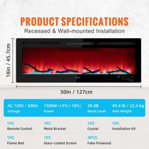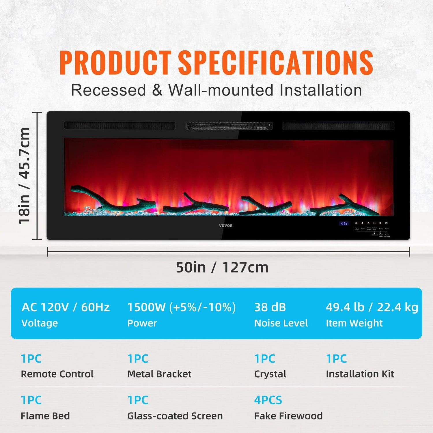 – Let Your Home Come to Life: The thickness of the upgraded electric fireplace is reduced to 0.03-inch and can match various decoration styles, ensuring years of use. CSA certificate approved. Suitable for living rooms, bedrooms, kitchens, corridors, etc. Let VEVOR s electric fireplace accompany you the whole winter.