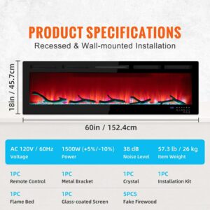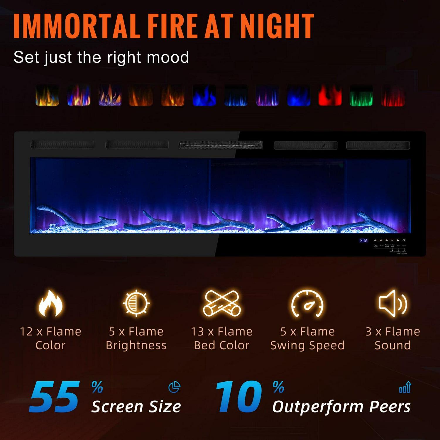 – Multi-Operation Modes: Our recessed fireplace is perfectly adapted to the Amazon Alexa voice assistant, allowing you to wake up to a warm electric fireplace anytime, anywhere. In addition, you can switch the flame color and set the heating temperature you want with the smart touch screen and TV-level remote control we provided.