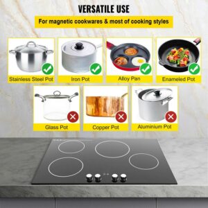 Our 4-burner electric induction cooktop reaches a high power output of 5.9kW.And it can be used with any magnetic cookware in your home, such as stainless steel pans, alloy pans, enameled pots, and iron pots. (An extra magnet is included for easily testing whether your cookwares are magnetic.) And it is suitable for most cooking styles such as boil, simmer, fry, stew, etc.