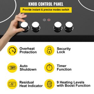 – Modern Digital Knob Controls: Our built-in electric stovetop has 9 heating power levels. The knobs allow you to precisely switch from boil to simmer and reach temperatures between 140-464 . The boost function is well-designed for rapid heating up to 518 within 3 minutes. In addition, the 1-99min timer is equipped, making cooking easy and enjoyable. Set the power and timer and let the cooktop do the rest. This knob control panel is ideal for achieving accurate cooking effects.