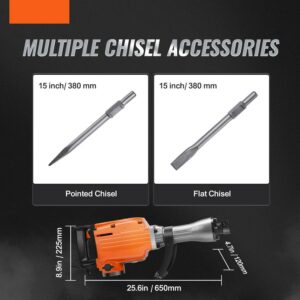 – Wide Range of Applications: The 110V power demolition drills & hammers include 2 chisel bits(flat chisel and point chisel). It is perfect for demolition, trenching, chipping, and breaking holes in concrete, block, brick, and tile. It is also ideal for various applications such as pipeline, mechanical installation, drainage facilities construction, housing foundation removal, concrete slab, oil chimney, interior decoration, and much more!