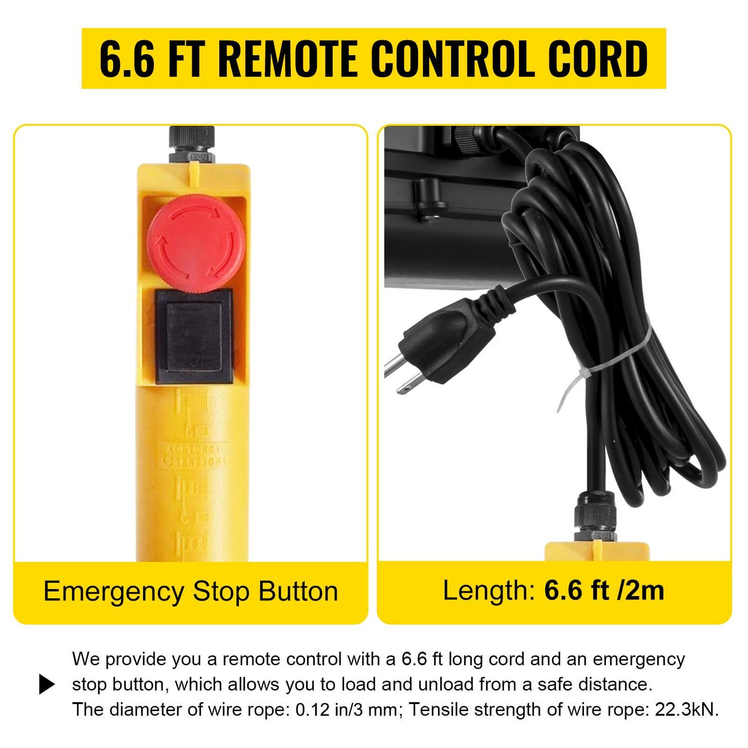 – 6.6 ft Control Cord: With this 6.6 ft remote control cord, you can operate the electric hoist to lift, place and lower the equipment without someone else’s assistance, which eliminates the dependence on being tied to the hoist.The remote control features the durable material for harsh environment.