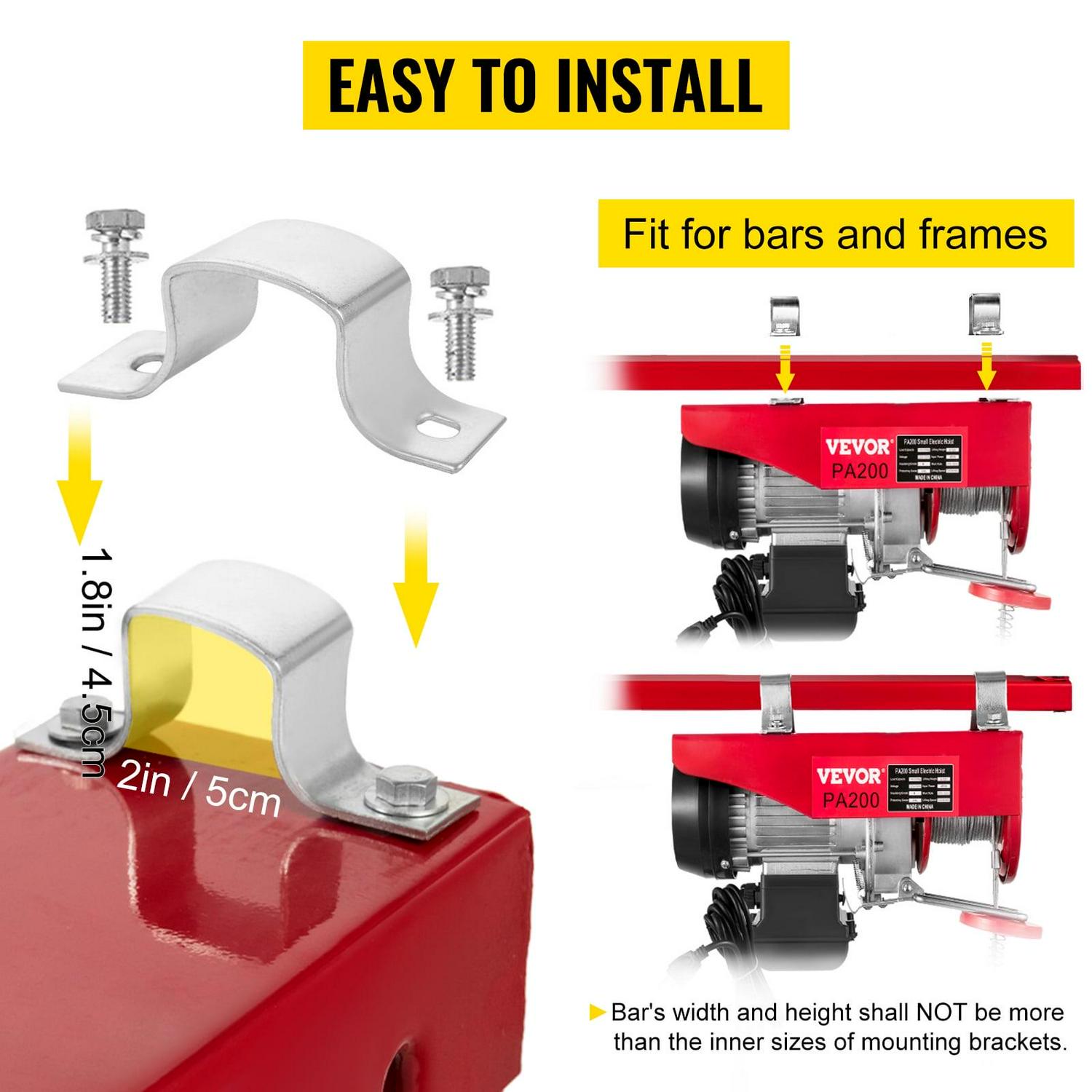 – Straps Provided & Tips: We provide two straps for lifting irregular goods. For your reference: Use a square/rectangle metal bar to fix the hoist. And the bar’s width and height shall not exceed the inner size of the mounting bracket.It comes with all necessary mountings. Simply assembled then ready to use. Compact construction, lightweight, easy operation, perfect for lifting small engines, large shop tools, transmissions, or building supplies in factories, warehouses and cargo berth.