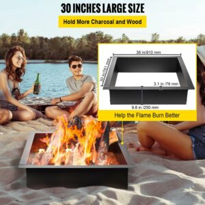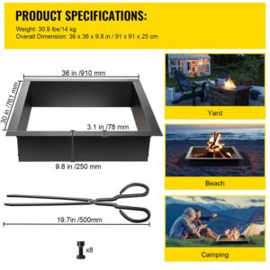 BENTISM Fire Pit Ring, 30 Square Fire Pit Insert, Heavy Duty Steel Fire Ring, DIY Bonfire Liner with Tongs Insert with Simple Installation for Outdoor, Patio, Backyard