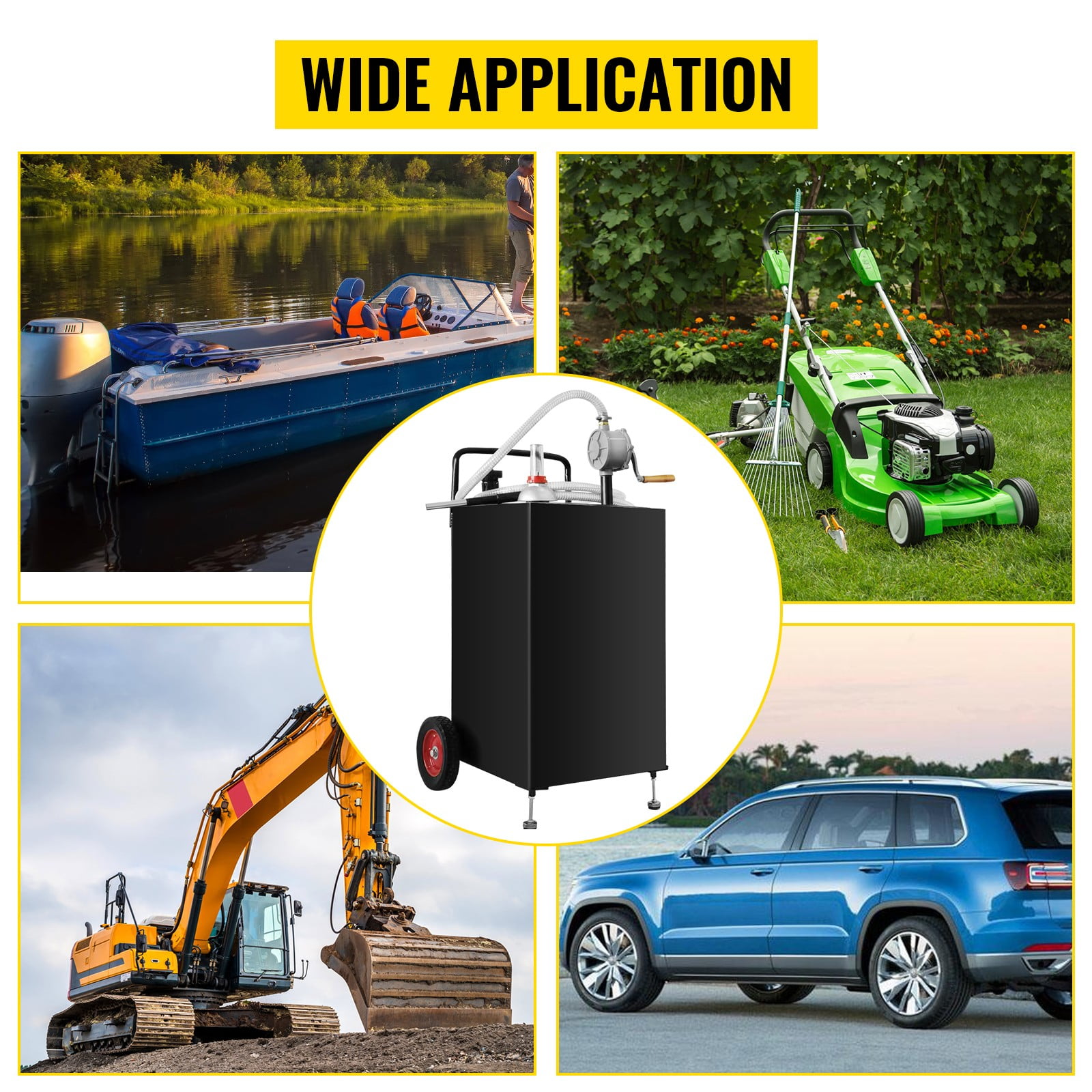 - High Volume 30 Gallon Fuel Caddy: The 30-gallon fuel caddy allows for easy maneuverability, letting you bring the fuel directly to where you need it, making dispensing quick and painless. Our fuel storage tank can securely hold gasoline, kerosene, or diesel. It’s the perfect choice for auto repair, farms, lawns and gardens, marine uses and more.
