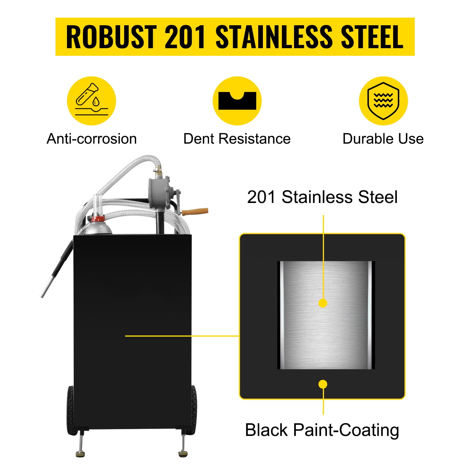 - Highly Robust Steel Tank: Made of durable 201 stainless steel material, this gas tank with pump is capable of handling changing weather conditions, and is resistant to UV radiation and dents. This high-quality material ensures long service life. Never get left behind.