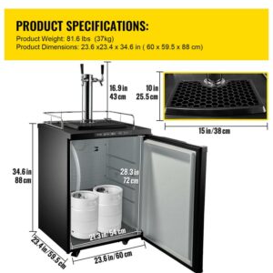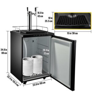 BENTISM Full Size Kegerator Beer Dispenser Refrigerator Black Fridge Double Taps