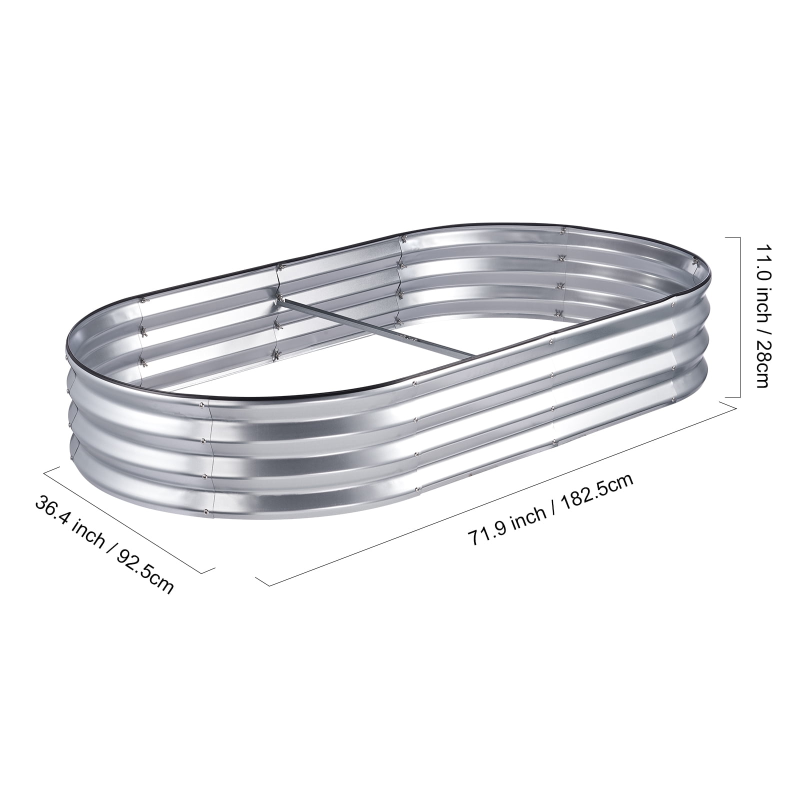 Product Description Raised Garden Bed Unbeatable Material This raised garden bed is constructed of powder-coated galvanized metal that is water-proof and corrosion-proof to withstand a variety of outdoor weather conditions. Spacious Planting Space The widely applicable size ensures adequate growing space and ensures quality room for roots to extend. Our raised garden bed is both decorative and practical. Simple Installation The metal garden bed is equipped with complete accessories, including bolts and nuts. Just connect the plates with screws. You can finish installation in a few minutes. Easy Water Design The bottomless design means the excess water can go into the earth to help keep the soil balanced. This raised bed is effortless to maintain and use. User-friendly Design To enhance protectiveness, we have passivated the top with rubber strips. You don’t need to worry about accidentally hurting your hand during assembly or gardening. Various Use Our planter-raised beds are ideal for growing vegetables, fruits, herbs, and other plants in your garden or yard, helping you create a beautiful garden. Specifications Product Size: 48.2 x 24.6 x 11.0 inch / 122.5 x 62.5 x 28 cm Net. Weight: 12.3 lbs / 5.6 kg Finish: Double-sided Galvanizing Material: Metal Color: Silver Package Content 1 x Raised Garden Bed 20 x Plant Label 1 x Gloves 1 x Planting Tool Set (2 x Shovel, 1 x Rake) 1 x User Manual