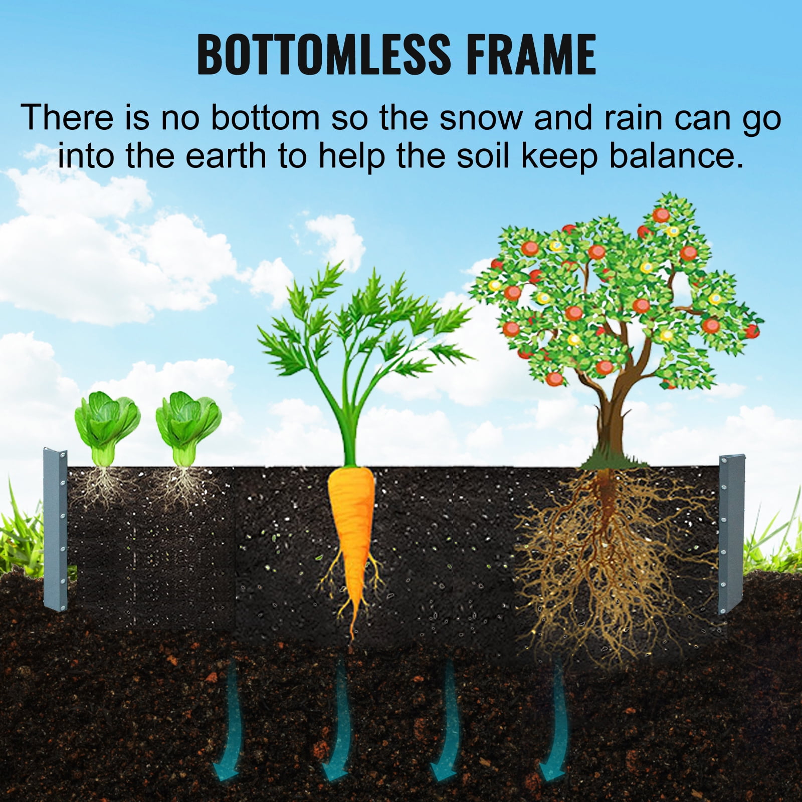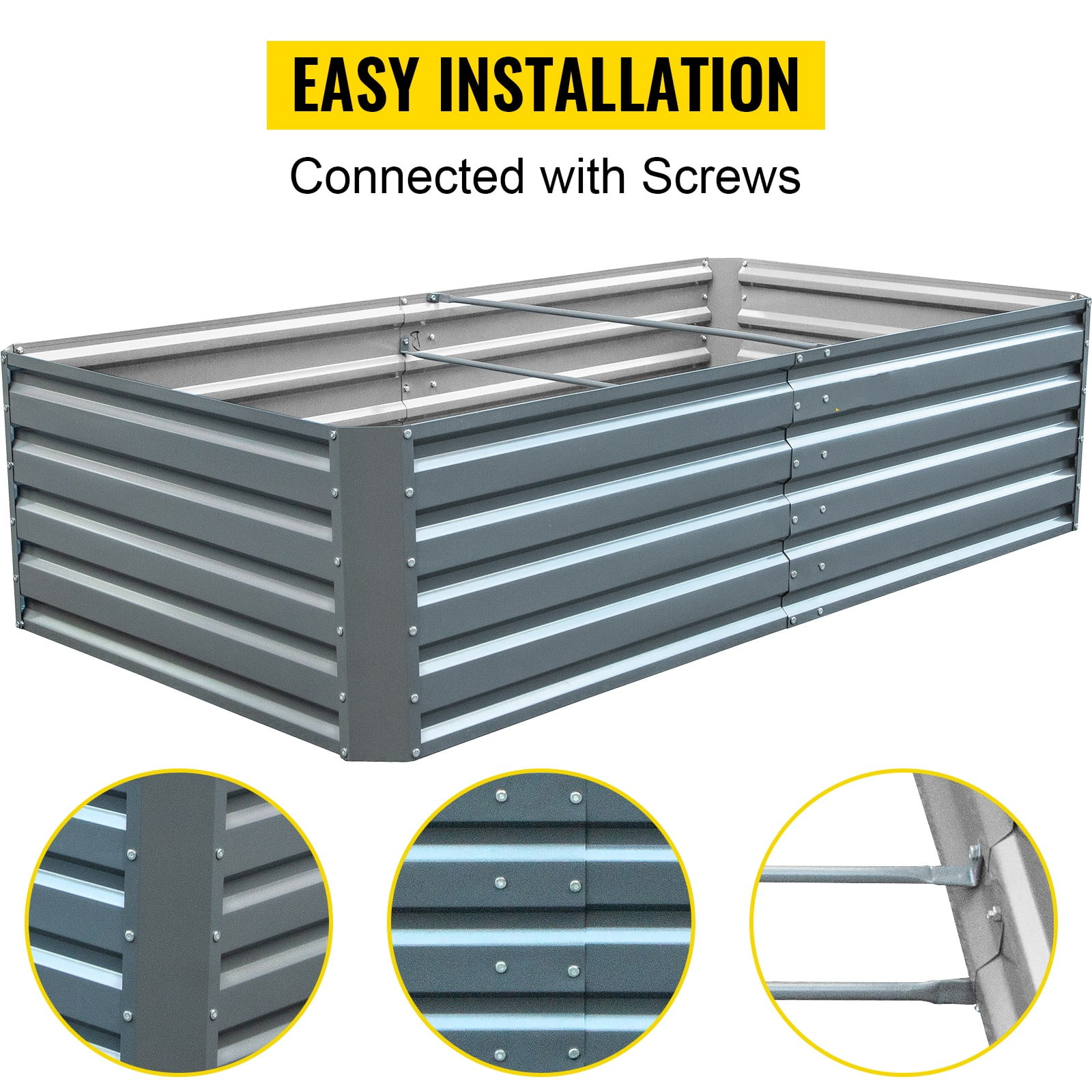 【LARGE GROWING SPACE】- This galvanized raised garden bed measures 80 x 40 x 19 inches/203 x 102 x 48 cm to provide sufficient growing space for plants. It can create a spacious environment for you to plant fruits or vegetables in your garden and enjoy the freshness. 【GALVANIZED STEEL MATERIAL】- Our rectangular raised garden bed is made of galvanized steel material, durable and sturdy enough for long-lasting use. Gray coating surface not only beautiful but also rust- and corrosion-proof to keep stable under various weather. The inner bars improve the stability. 【BOTTOMLESS FRAME】- Thanks to the open bottom design, the plant roots can go further into the ground and not touch the metal. The extra water can go into the earth, so there is no need to worry about the rain or snow. Just enjoy your planting time. 【CONVENIENT TO ASSEMBLE】- This metal garden bed features pre-drilled holes for quick and easy assemble. All you need to do is connected the metal plates with the bolts and nuts in the package. It is also equipped with Nitrile Butadiene Rubber strips on the top to protect your hands. 【WIDE APPLICATION】- This plants raised bed is suitable for the garden, backyard, balcony, and other places to grow vegetables, fruits, herbs, succulents, etc. It is very convenient to use for daily garden care- a good choice for garden lovers.