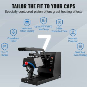 – 4-in-1 Unforgettable Hat Press: Imagine when you pick up a hat to wear, you can see your children, lover, friends, family members, or any pattern you like! It will be very unique and special. This 4-in-1 hat heat press machine integrated with four kinds of heating pads that are 6 x 3, 6.7 x 2.7, 6.7 x 3.8, and 8.1 x 3.5 inches perfectly meets your diversified needs and is friendly for beginners as well. Let your creativity run without worries!