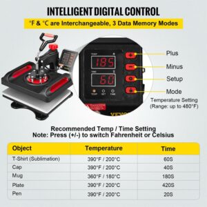 – LCD Digital Control & Display: UL Certification approved.Large LCD screen display, silicone buttons, easy to operate, precise control. Counting function, three modes can be switched freely, the heat press machine has memory function, easily set & store three sets of data, and there is no need to set parameters repeatedly. In addition, Fahrenheit and Celsius are Interchangeable.
