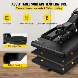 15 x 15 in heat press machine provides ample room for more basic heat pressing processes. In addition, the thickened board enhances better heat retention, ensuring a good heat consistency.