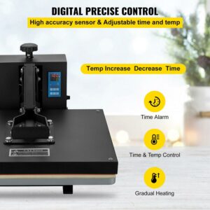 – Digital Control Board: This heat press is equipped with a precise control panel, helping you accurately regulate the temperature and time. After finishing heating, the machine will automatically sound an alarm to remind you to take out the items.