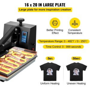 – 16 x 20 Heat Press: The larger heating pad, adopts silica-gel and sponge, reaching a service life of 20,000 hours. Deliver a quicker heating speed and a better transfer effect. It can also reduce unpleasant smells during operation.