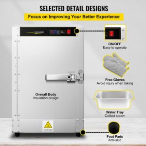 – Considerate Details Design: The whole body adopts an insulation design. The internal detachable water tray is used to collect water vapor; the one-button switch is convenient for you to operate; the attached heat-insulating gloves are convenient for you to take food; the non-slip feet at the bottom can stabilize the machine from slipping.