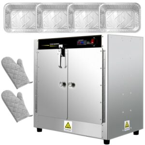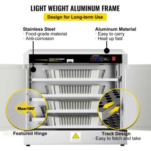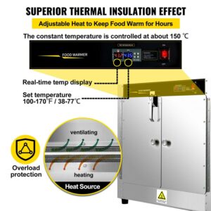 – High-quality Aluminum Construction: Constructed of non-corrosive aluminum, this food warmer can hold prepared foods at proper serving temperatures for extended periods of time. The lightweight frame on this warmer allows for easy mobility. The trays are made of stainless steel and is very easy to pull, the door hinge allows you to open the door at a maximum angle of 180°.